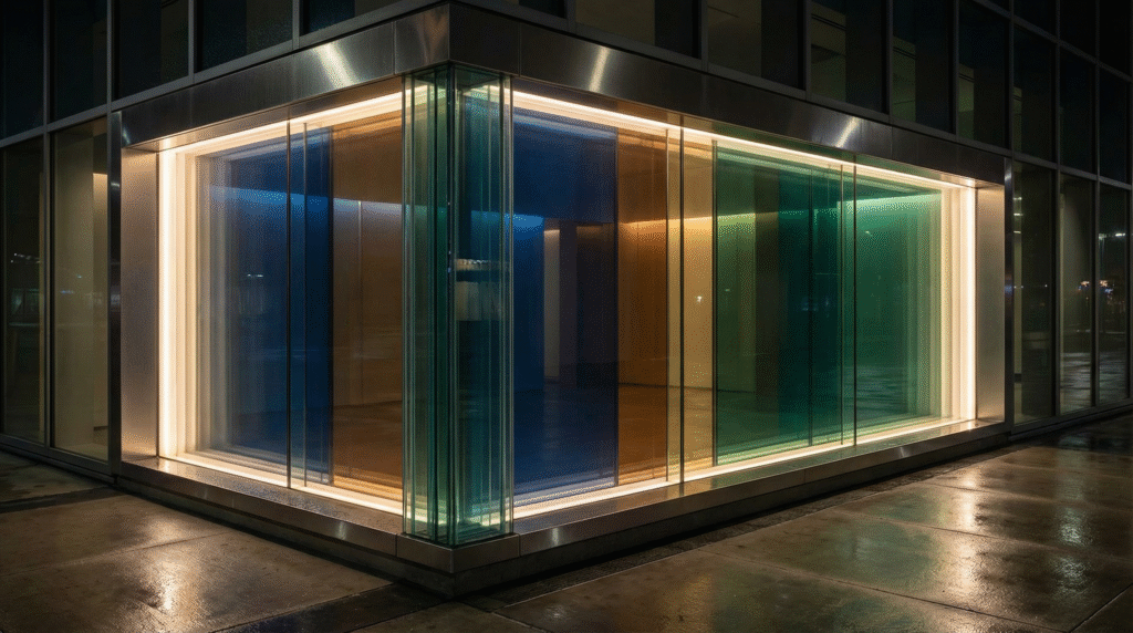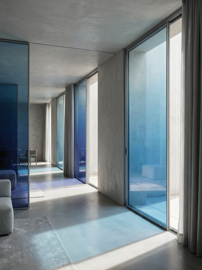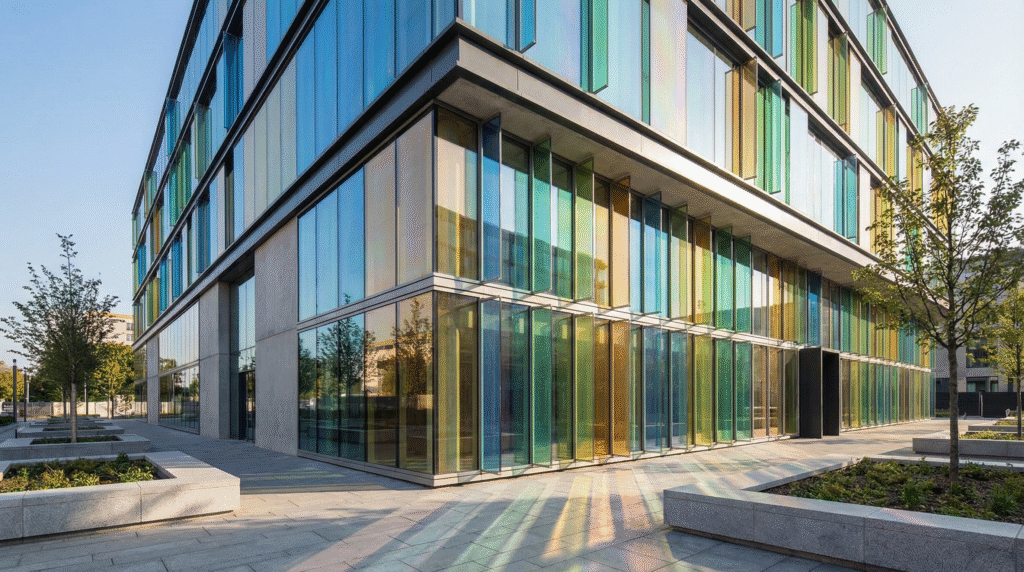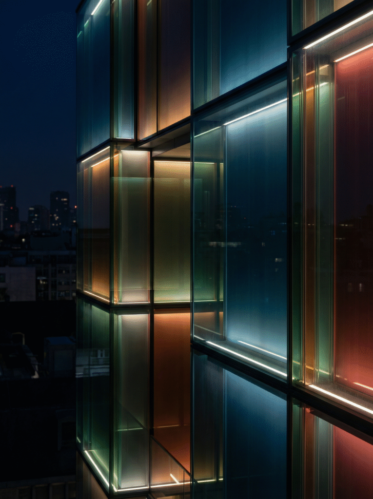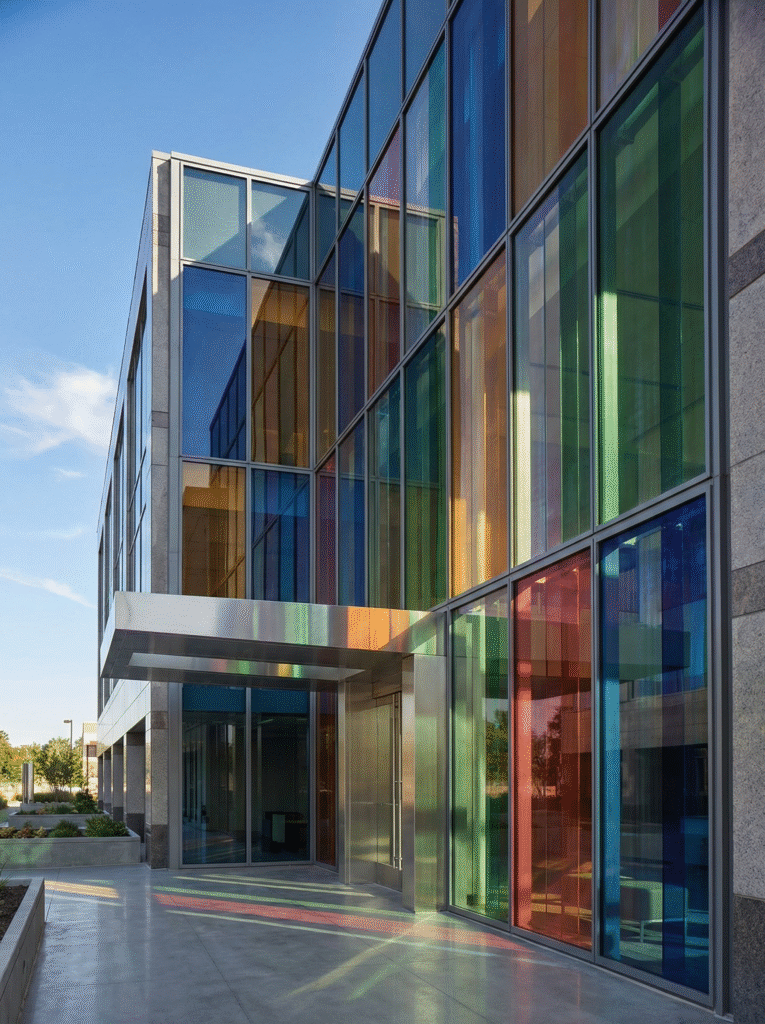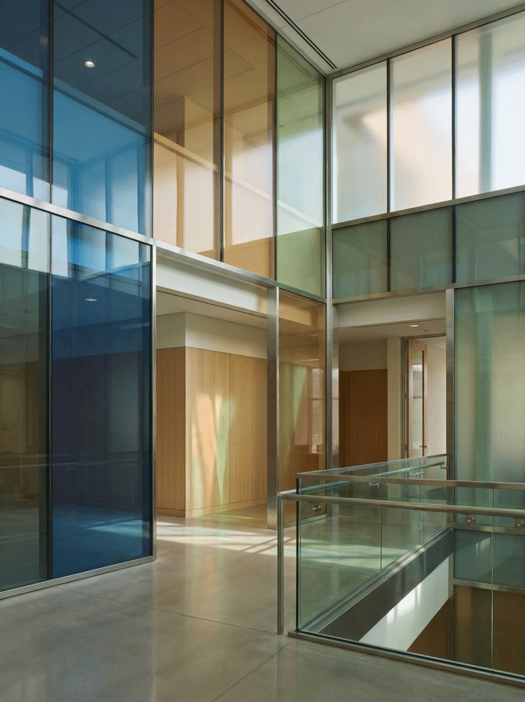 17,000色以上のカラーバリエーションによる高い意匠性に加え、紫外線カットや防犯・遮音といった性能面でも、建築空間の価値を高める合わせガラスです。