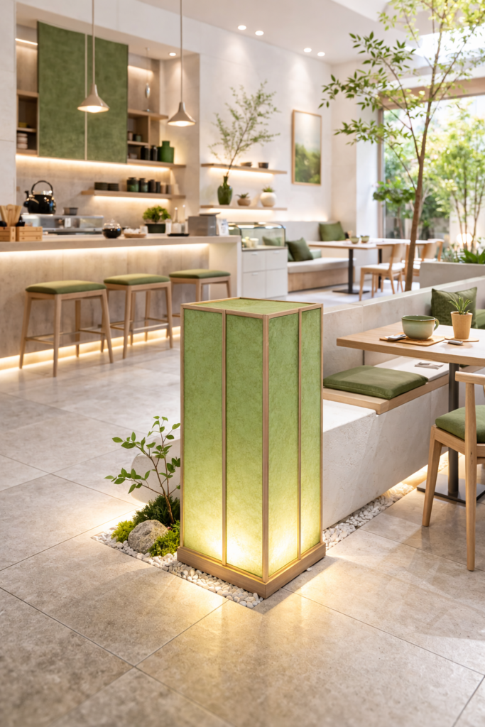 用途事例 □和室の扉・障子戸の代わりに使用し、明るくデザイン性の高い空間に □飲食店の内装として、こだわりの空間を演出 □住居のエントランスや壁面のアクセントに □商品の展示スペースや広い空間の装飾・パーテーションに