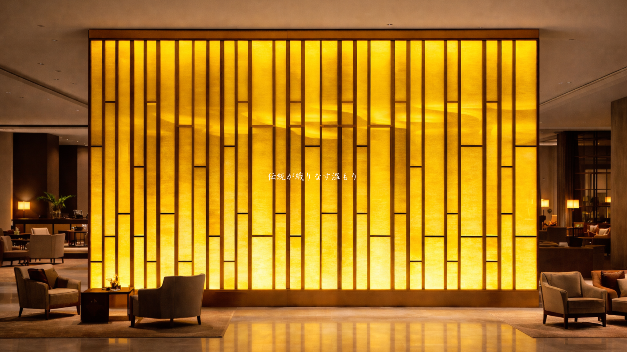 和紙ならではの風合いや質感を最大限に生かしつつ、和紙の弱点(汚れやすい・破れやすい・燃えやすい)を、独自のラミネート技術によって克服している点も強みです。「ワーロン=強化和紙の代名詞」と称される高い技術で、和空間に新たな価値をプラスする会社として確固たる地位を築いています。