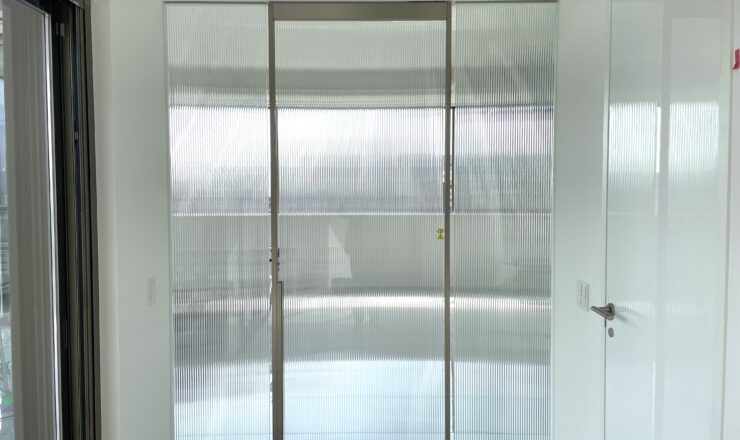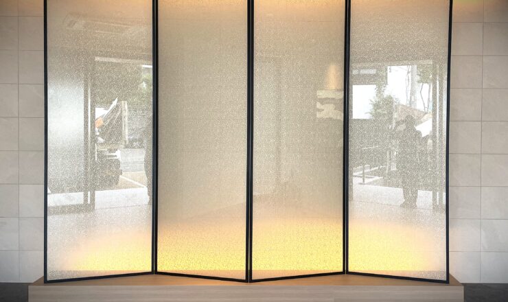 名古屋市四丁目の新築マンション内のエレベーターホールにて、ファブリックガラスをご採用いただきました。 ファブリックは表裏それぞ...