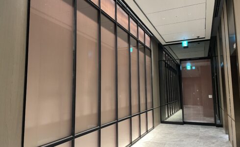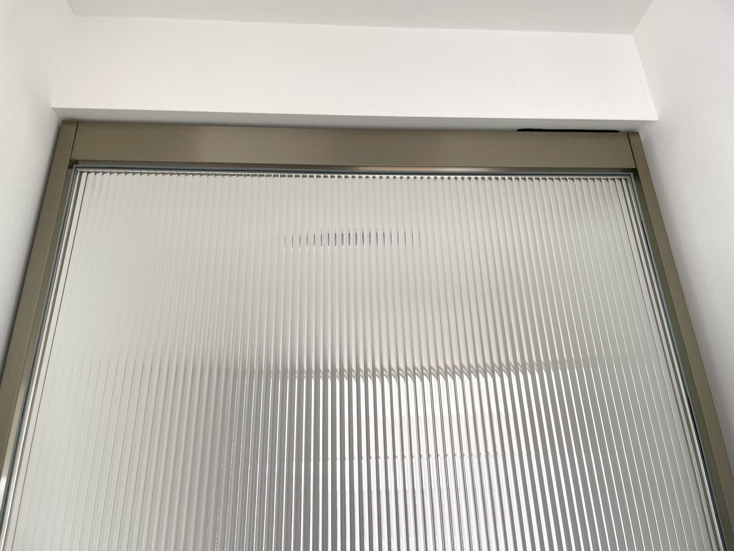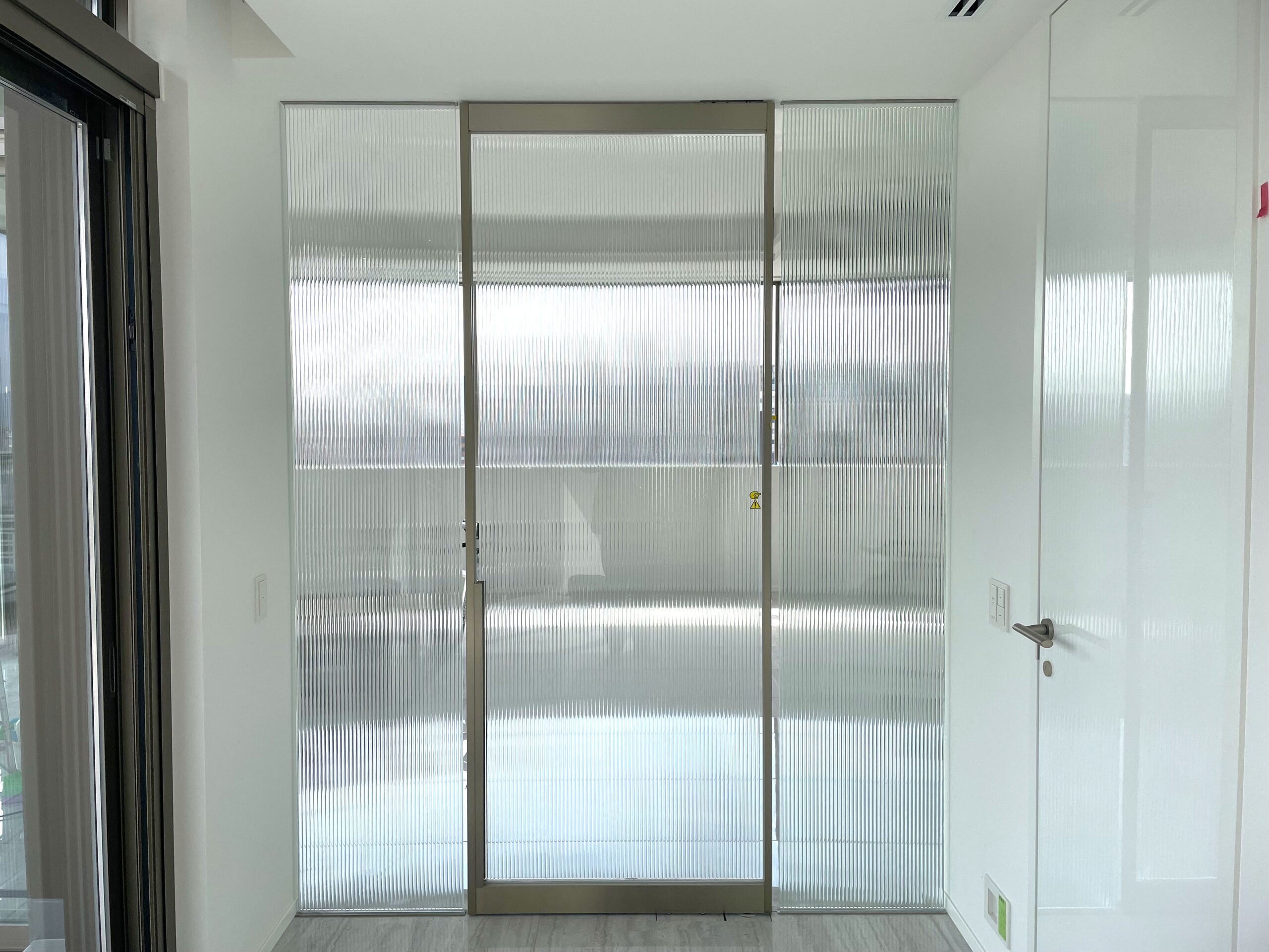 南青山マンション 建具ガラス 仕様:6㎜パターンMガラス+10㎜強化ガラス パターンガラスと10mm高透過ガラスの合わせガラスをドア用に提案させていただきました。 パターンガラスを一回り小さくし、框に収まる部分は高透過ガラスのみとすることで施工上の懸念を解消しました。 光の当たり方によって表情を変えるパターンガラスは、シンプルでありながらも目を惹くガラスになります。 また、パターンガラスにメッシュやファブリックを挟み、光沢感のある装飾ガラスとしてご使用いただくこともお勧めです。 【併せてご覧ください】 FacebookXBluesky オフィスの間仕切りガラス